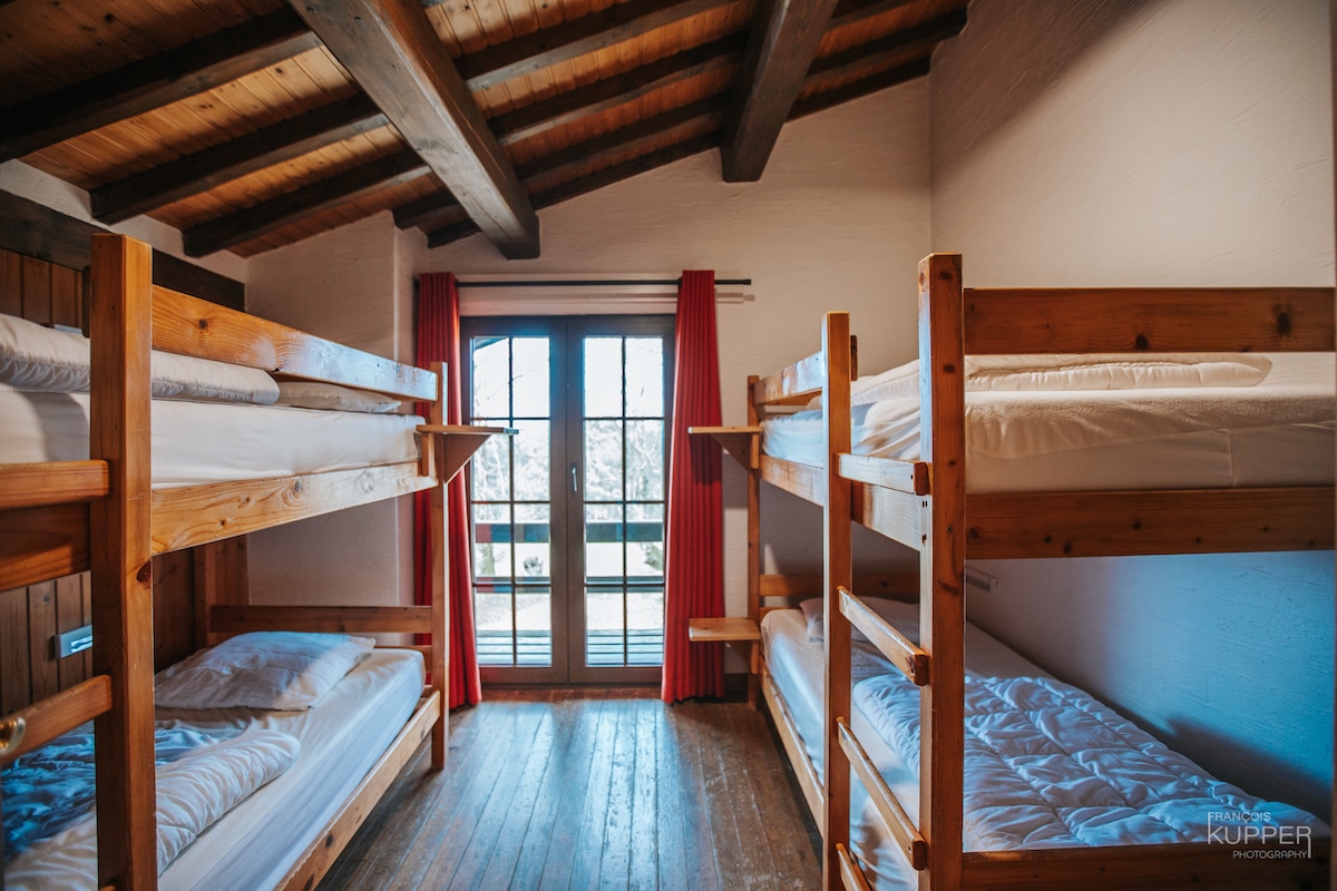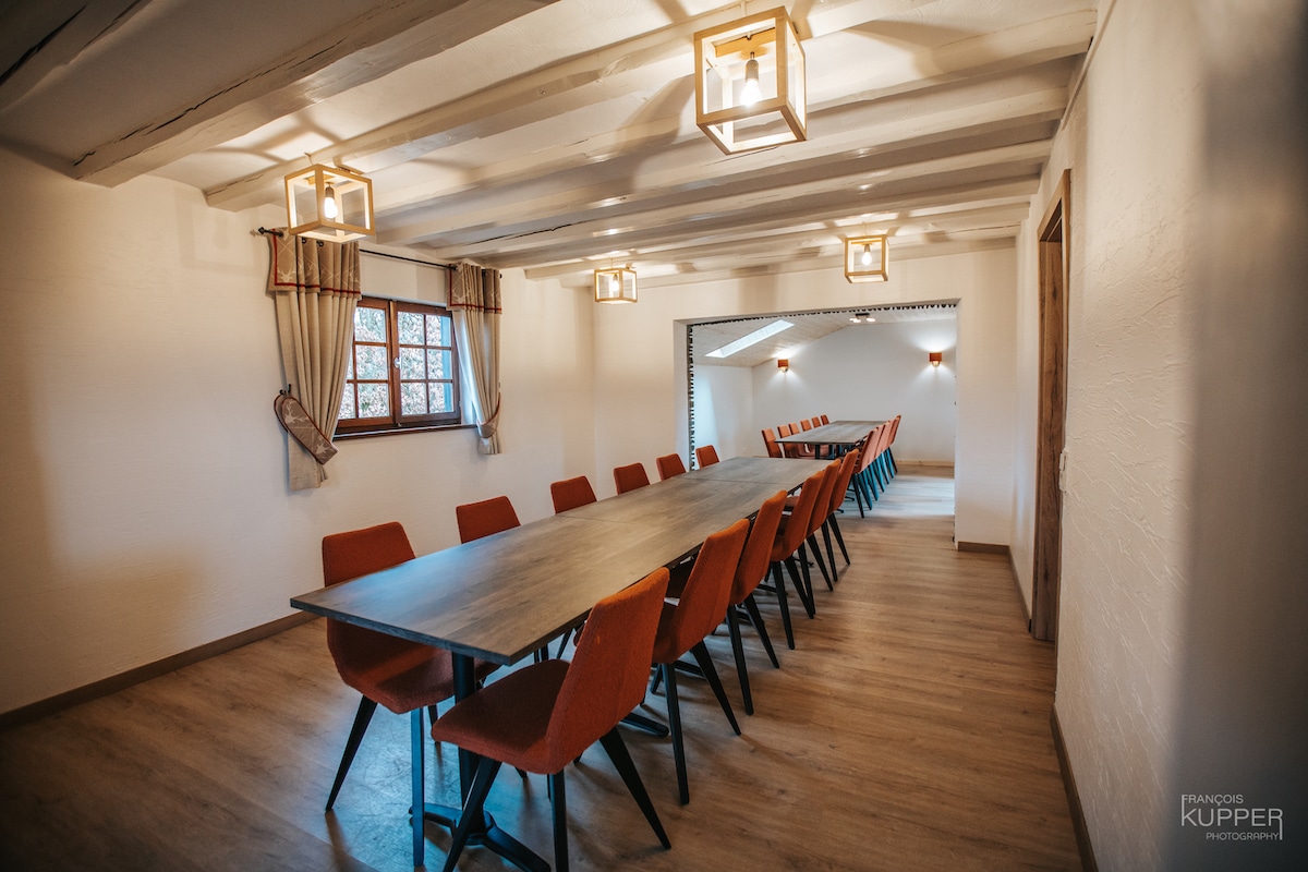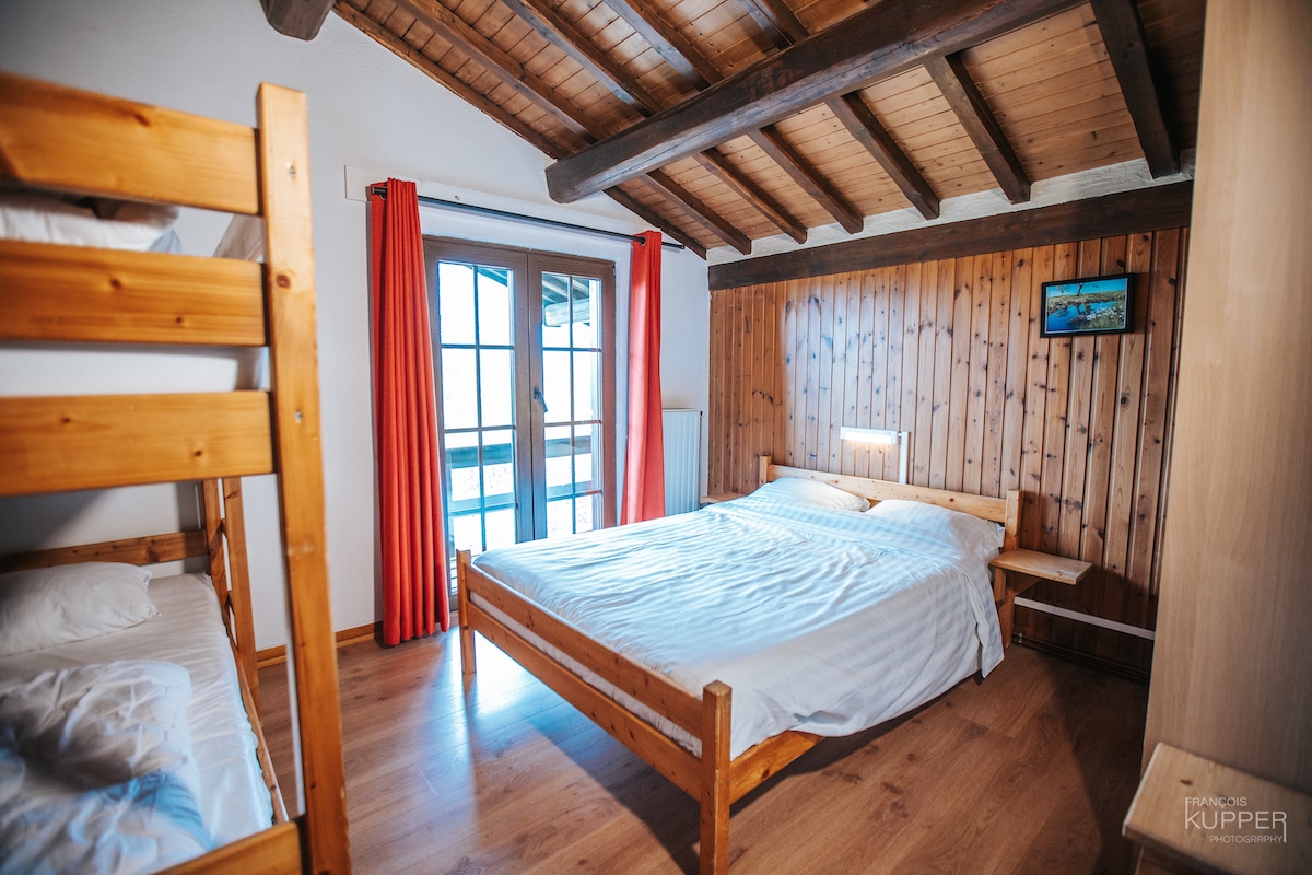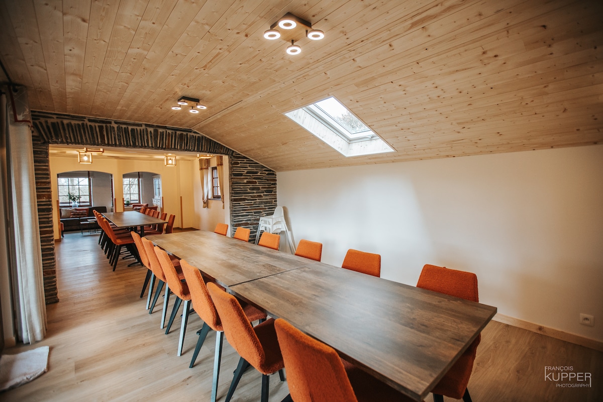 Situé à Xhoffraix – Malmedy. Résidence fagnarde de ± 350 m2, située dans une propriété au calme de 2600 m2 avec une vue exceptionnelle. Gîte pour 25 personnes avec wifi.